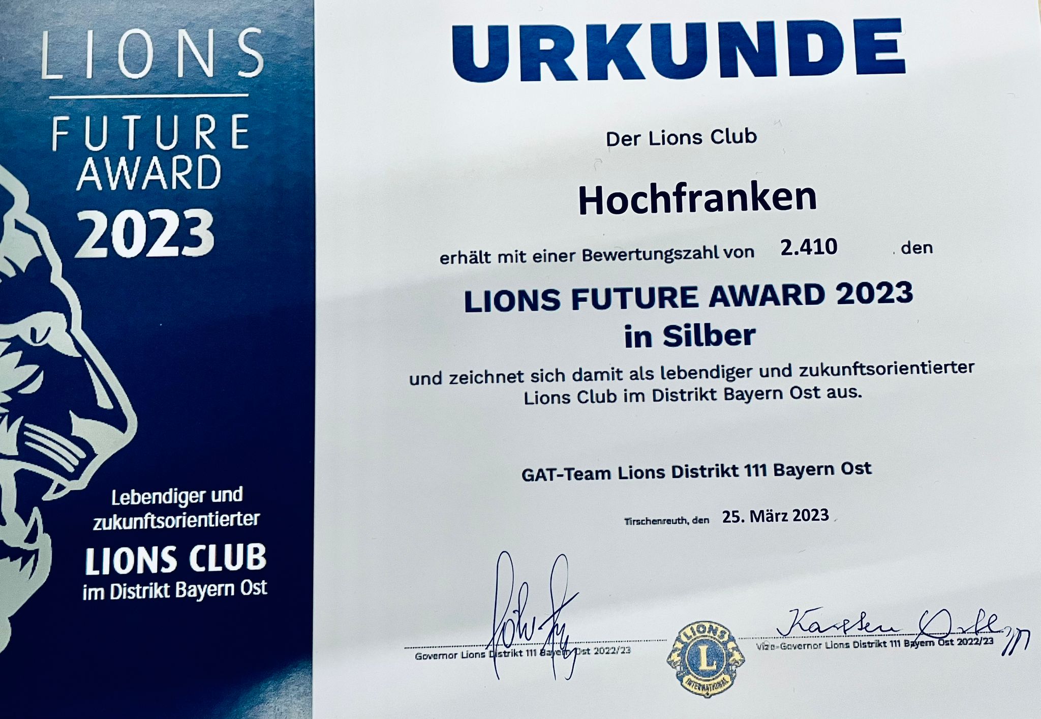 Unser Lions Club Hochfranken erhält den Lions Future Award in Silber!! Wir sind sehr stolz und dankbar für diese Auszeichnung!